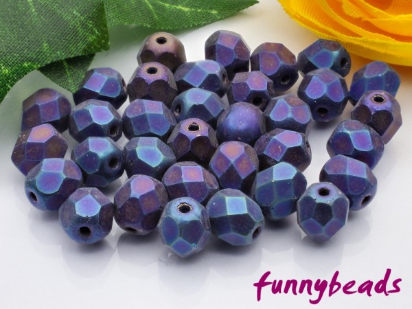Produktinformationen "50 Glasschliffperlen matte iris blue 6 mm"